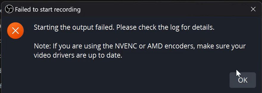 When you click "Start Recording", the OBS doesn't start to record (OBS Icon didn't turn red).